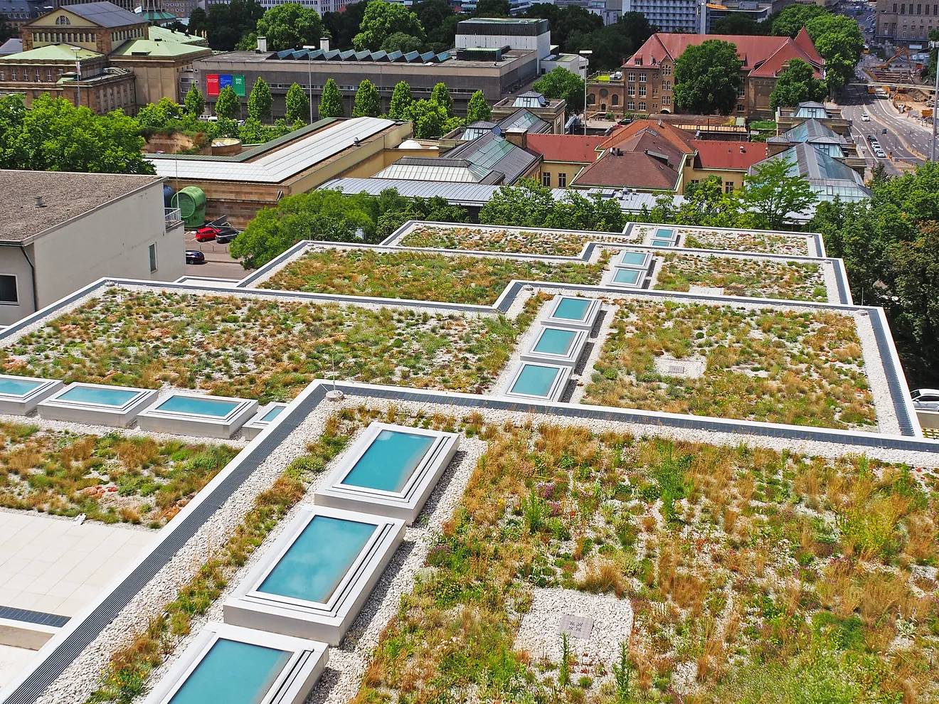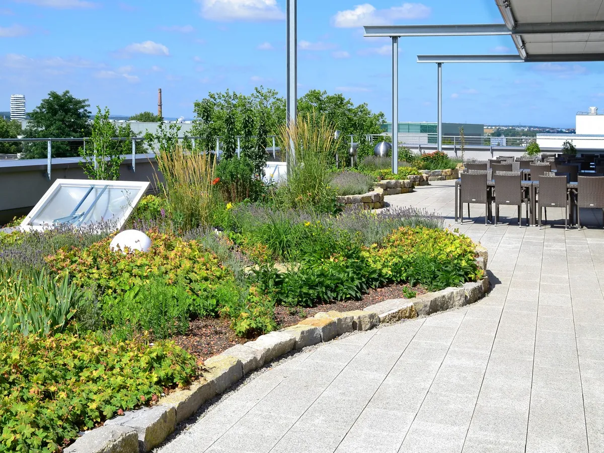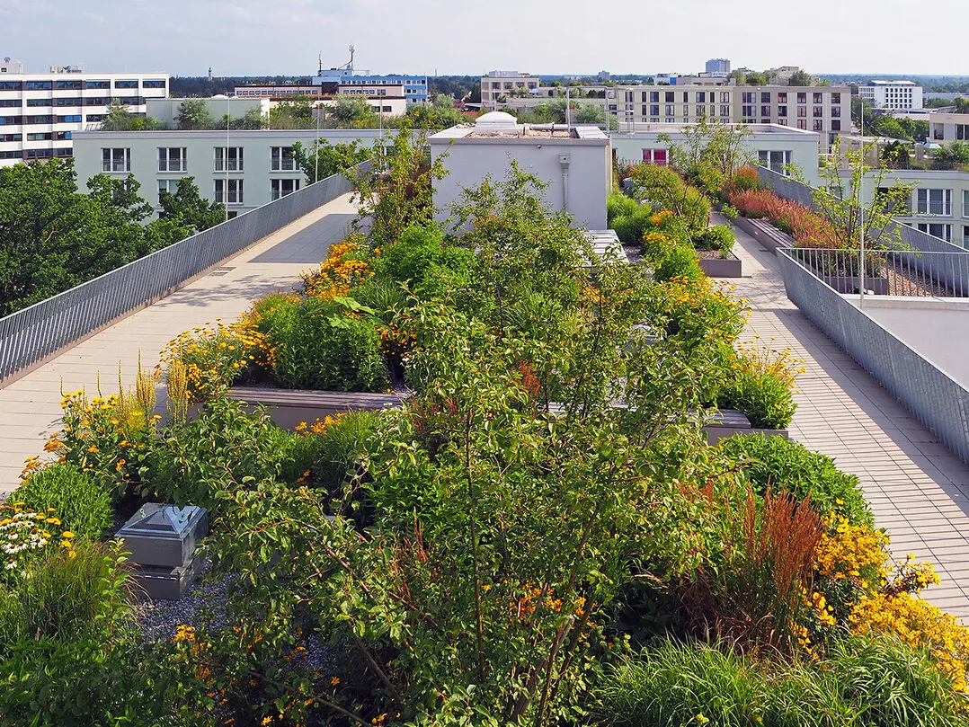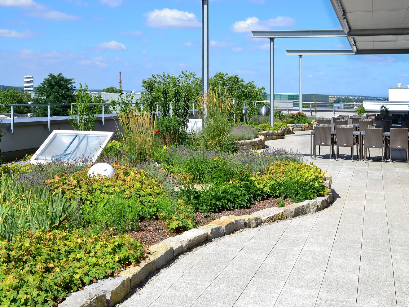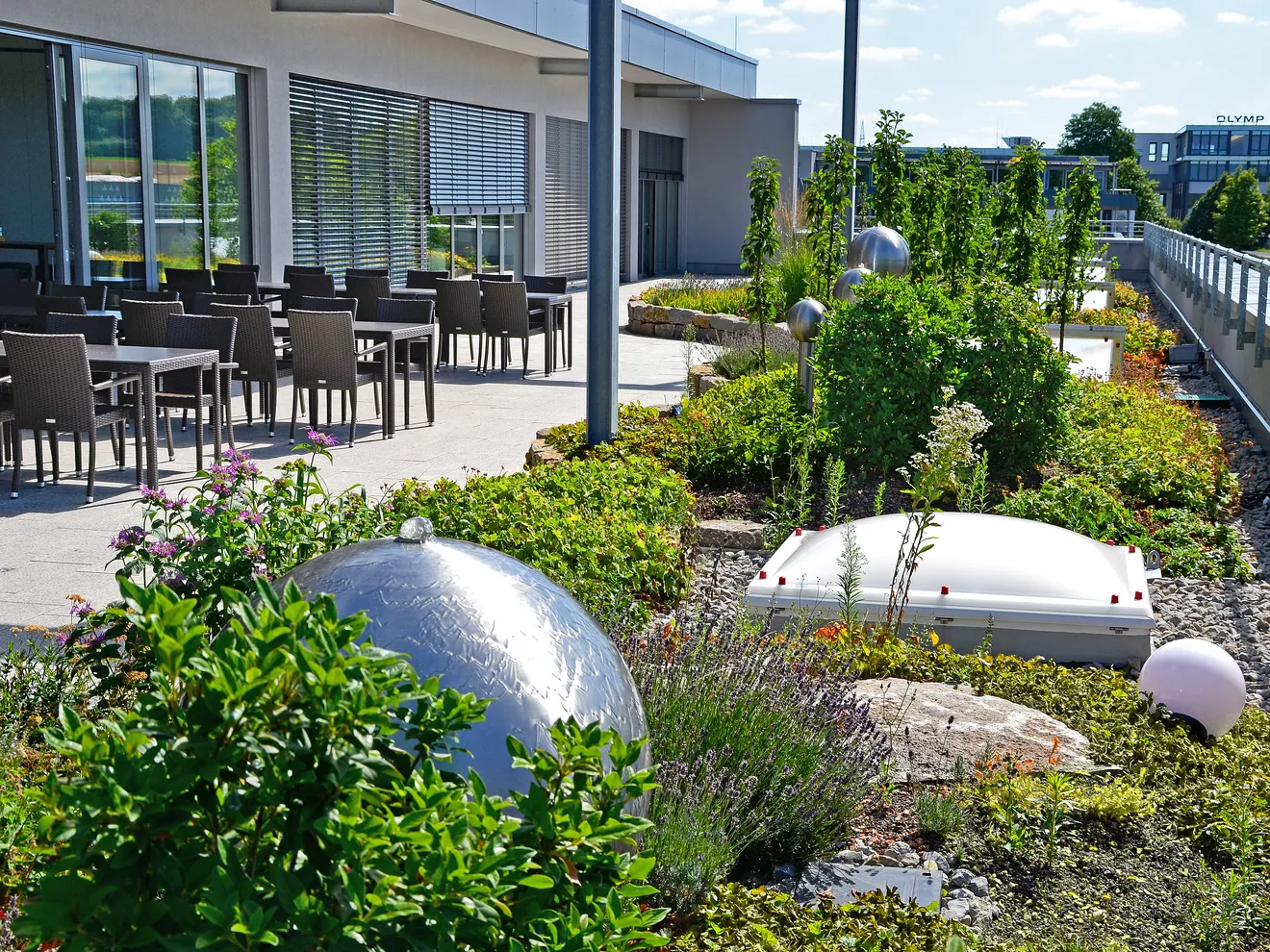 Als Erholungsgarten, Kantine, Freiluft-Bibliothek, Eventlounge, Messepark, Kindergarten-Spielplatz oder Mitarbeiter-Sportplatz – der Phantasie sind kaum Grenzen gesetzt. Mit intensiv begrünten Dächern lässt sich gerade im dicht bebauten urbanen Umfeld ein riesiger Flächengewinn erzielen – für Ökologie und Lebensqualität.