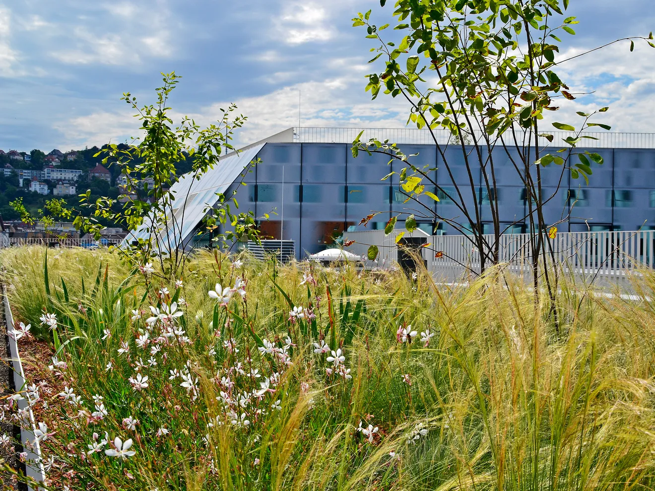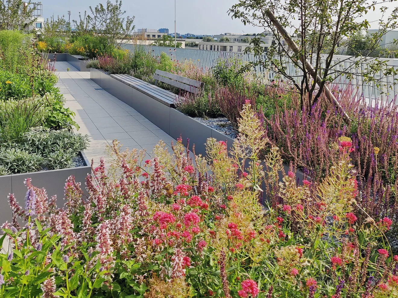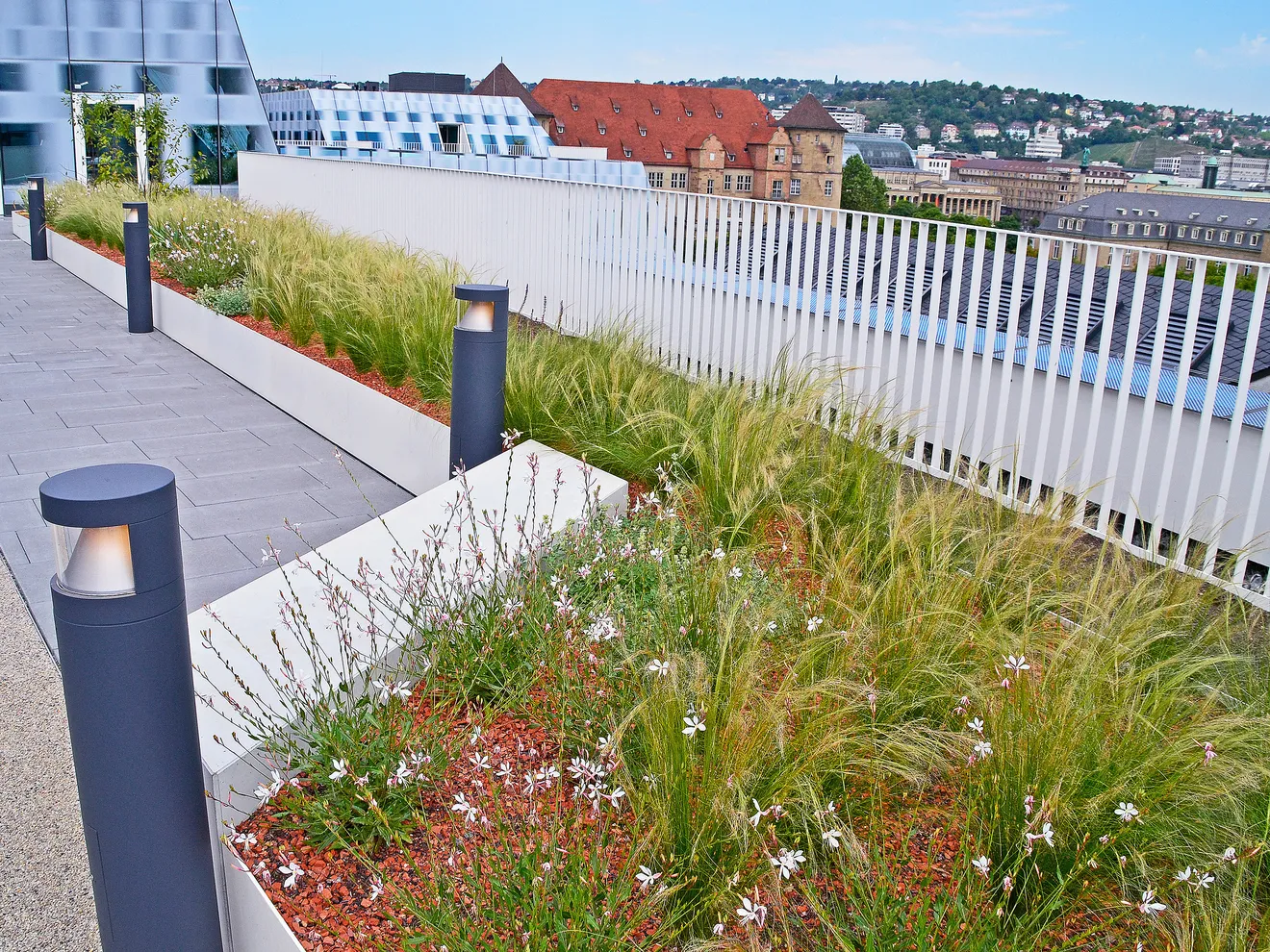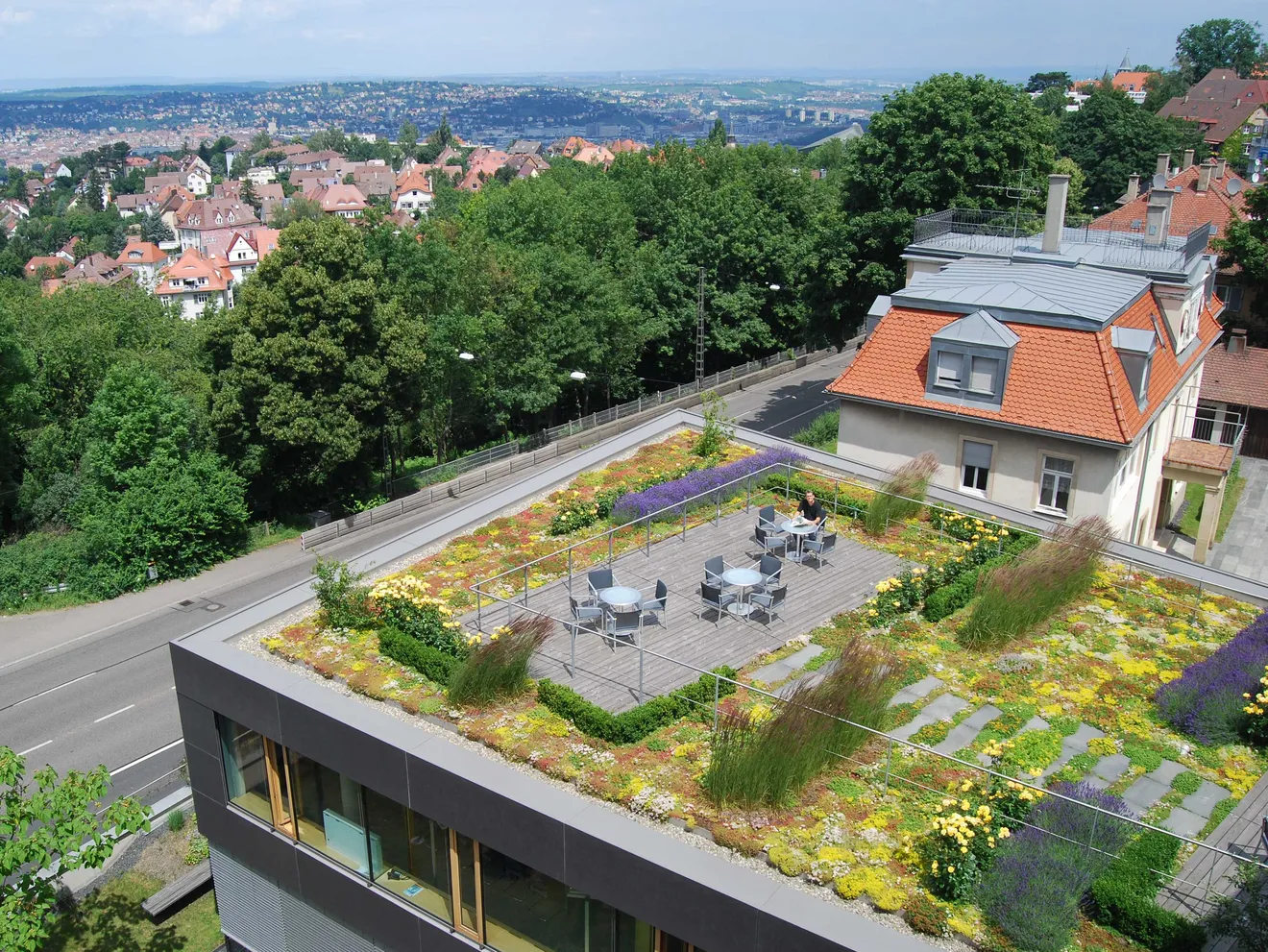 Als Erholungsgarten, Kantine, Freiluft-Bibliothek, Eventlounge, Messepark, Kindergarten-Spielplatz oder Mitarbeiter-Sportplatz – der Phantasie sind kaum Grenzen gesetzt. Mit intensiv begrünten Dächern lässt sich gerade im dicht bebauten urbanen Umfeld ein riesiger Flächengewinn erzielen – für Ökologie und Lebensqualität.
