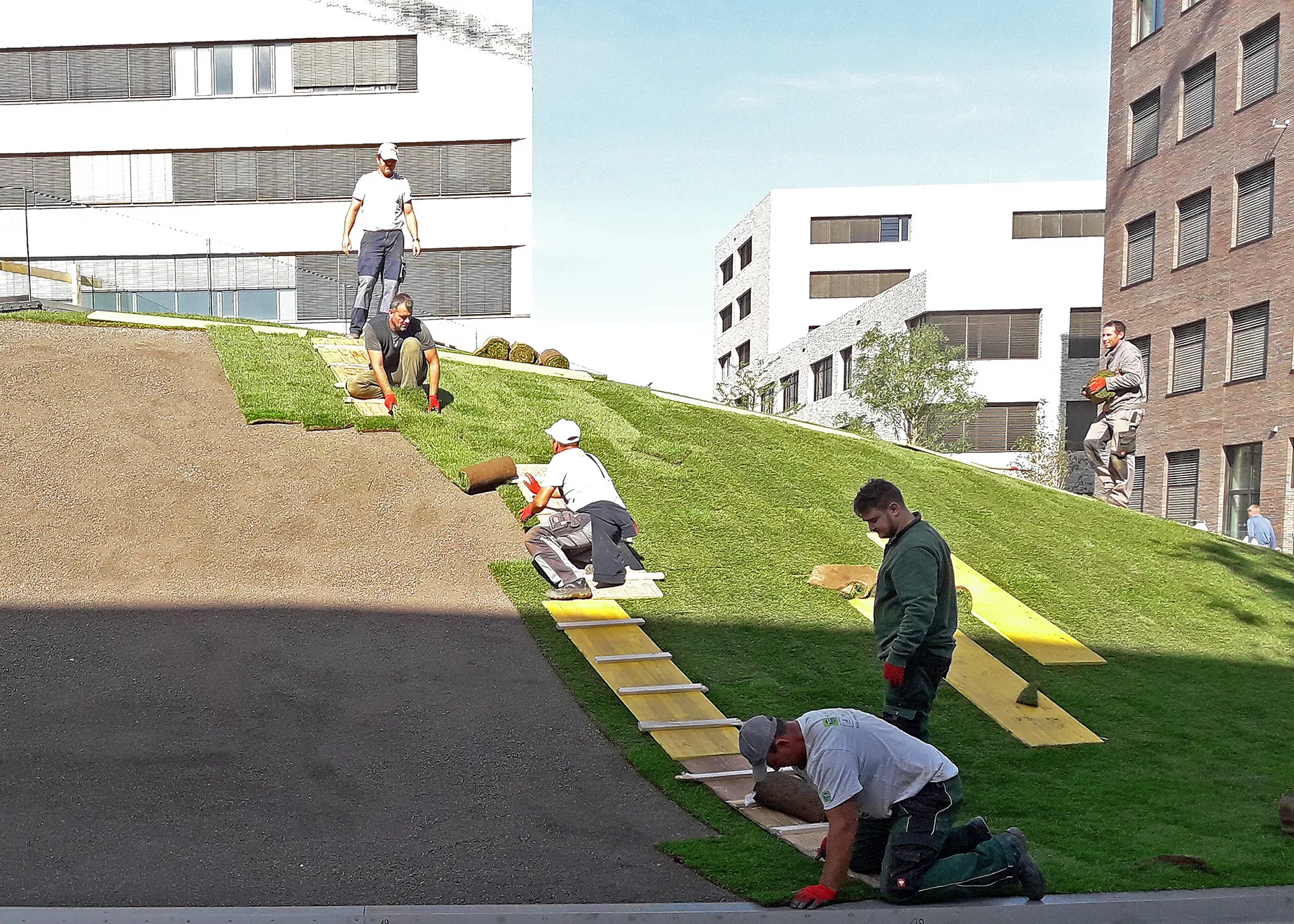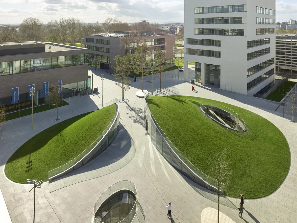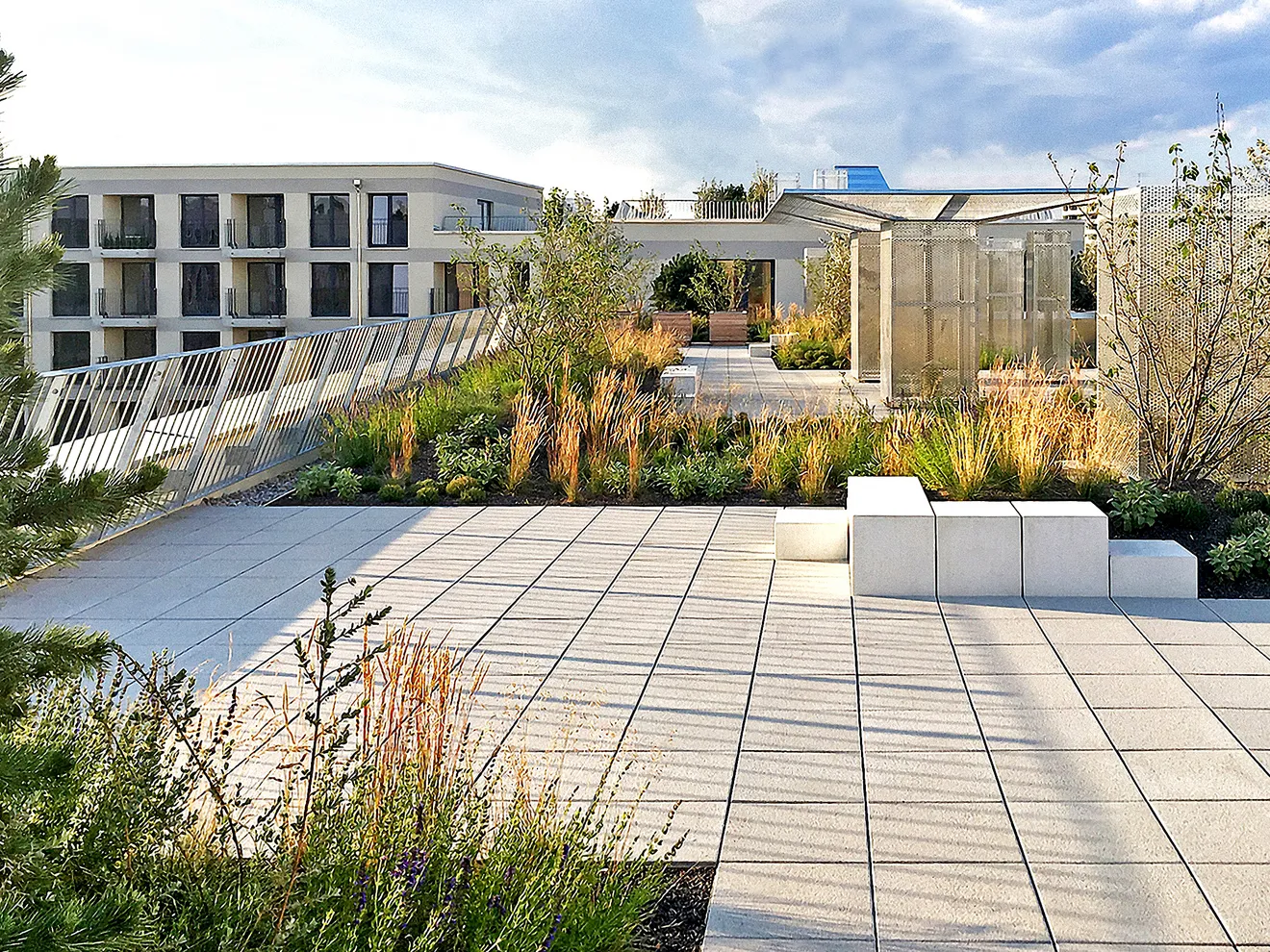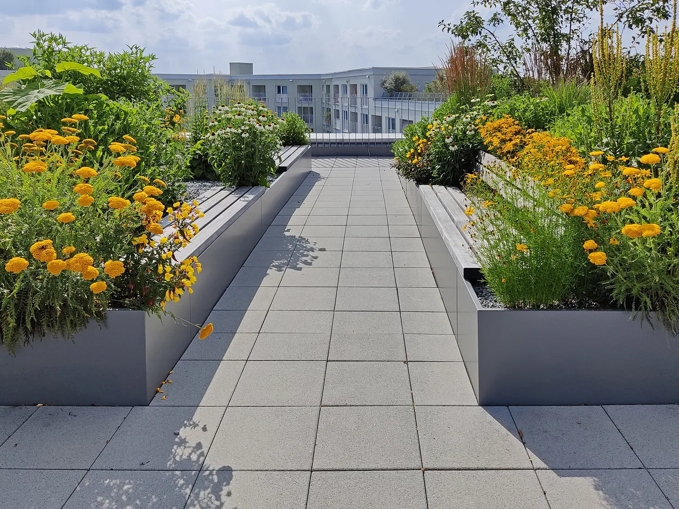 Als Erholungsgarten, Kantine, Freiluft-Bibliothek, Eventlounge, Messepark, Kindergarten-Spielplatz oder Mitarbeiter-Sportplatz – der Phantasie sind kaum Grenzen gesetzt. Mit intensiv begrünten Dächern lässt sich gerade im dicht bebauten urbanen Umfeld ein riesiger Flächengewinn erzielen – für Ökologie und Lebensqualität.