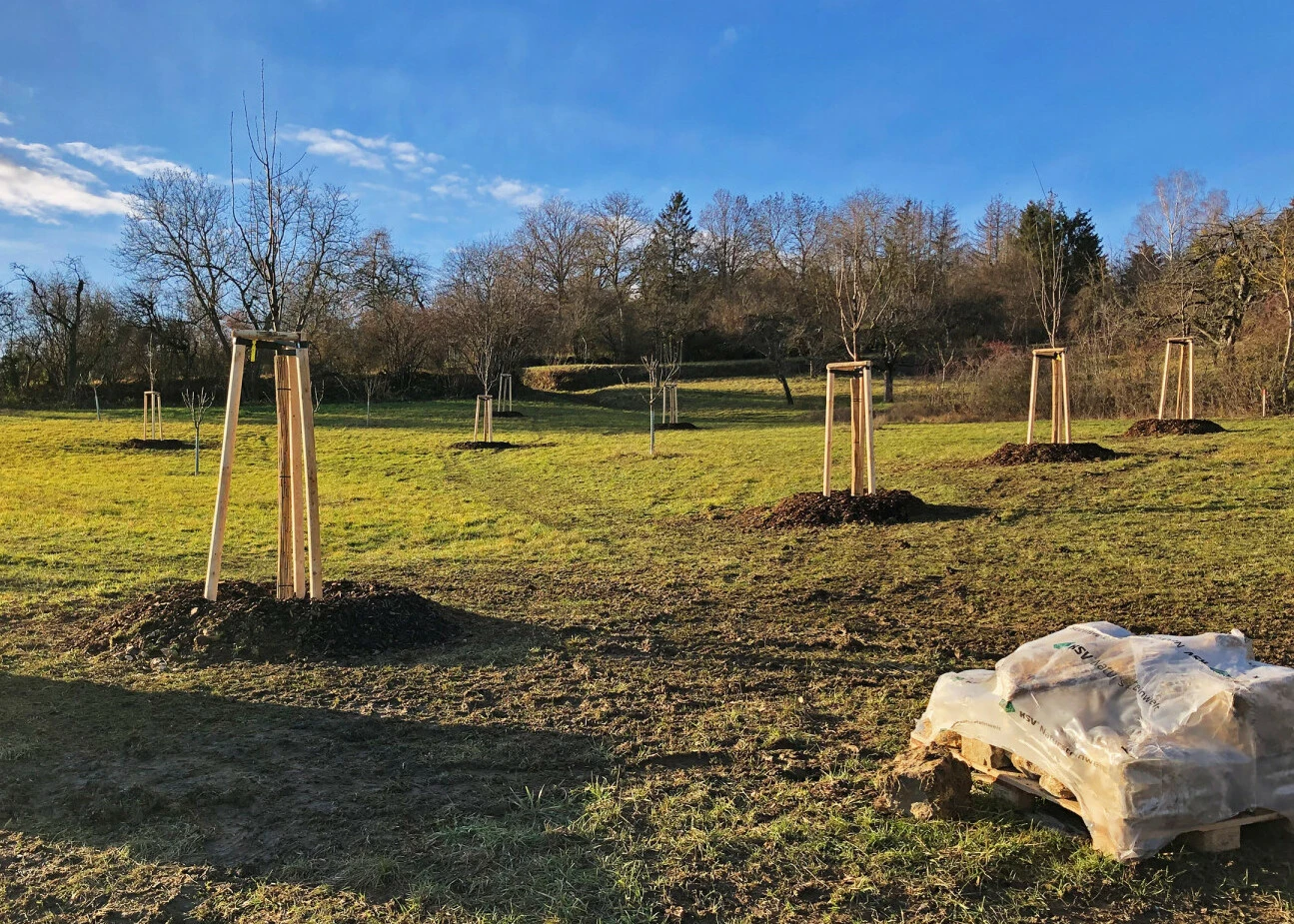 Die Arbeiten wurden von Oktober 2020 bis März 2021 durchgeführt, zum Teil mit drei parallel arbeitenden Teams und einigen Maschinen. Jetzt im Sommer wurden die angesäten Wiesen das erste Mal gemäht.