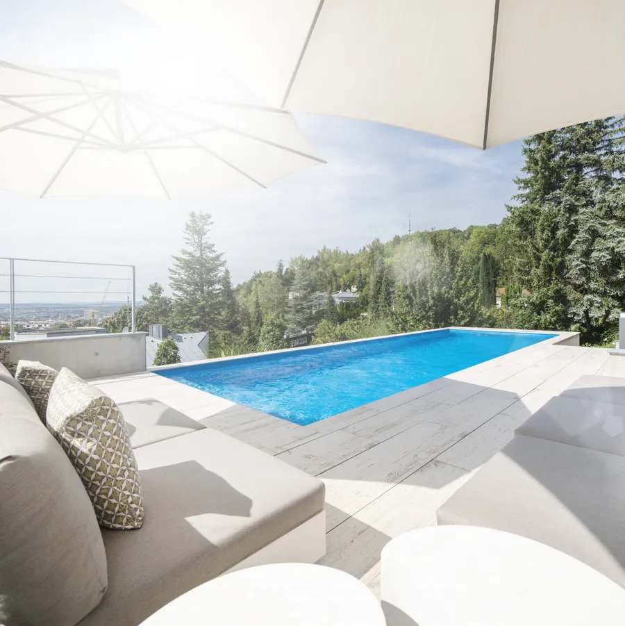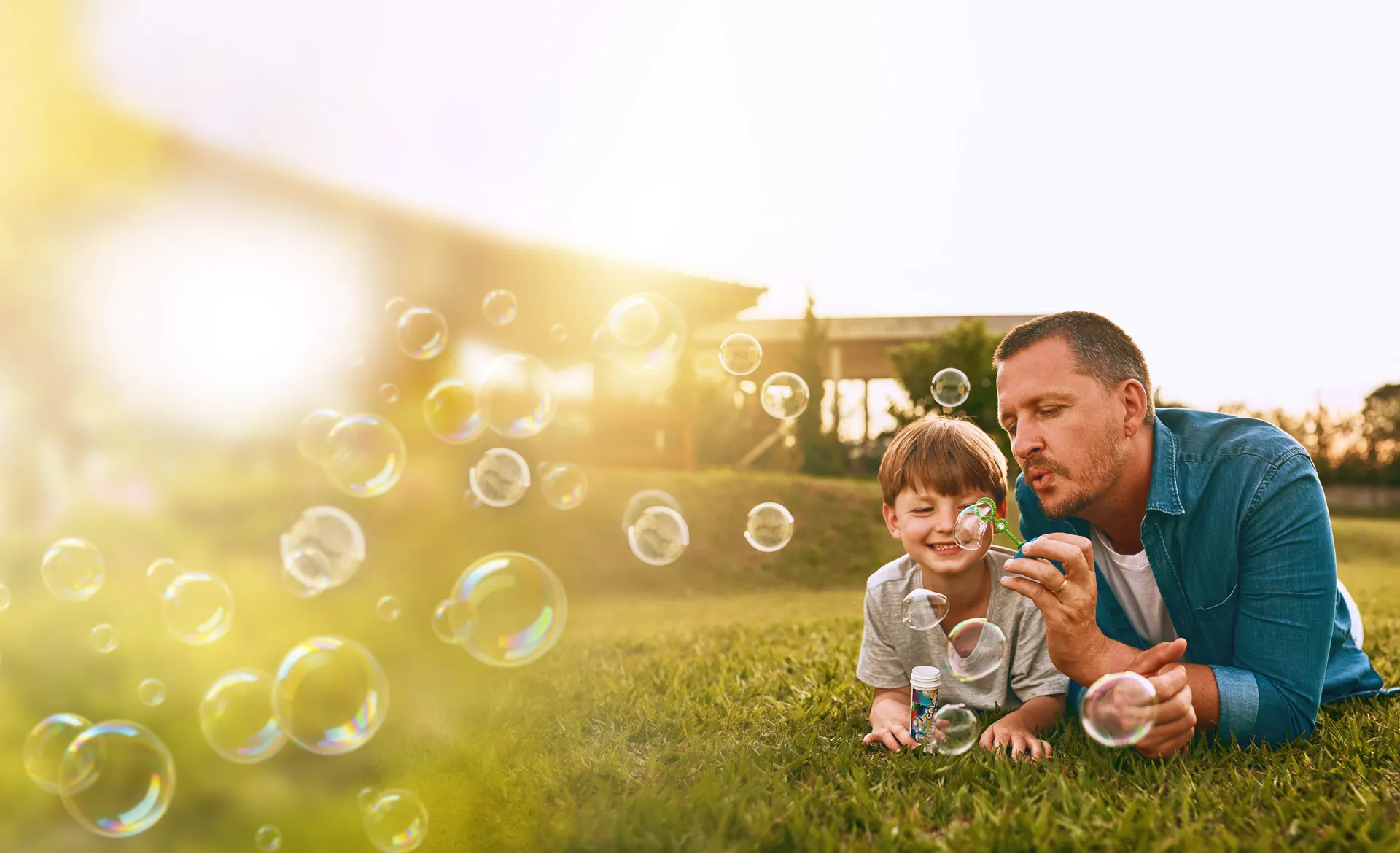 Barfuß den frischen Morgentau auf dem Rasen spüren. Herrlicher Blütenduft, der in die Nase steigt, während das Laub der schattenspendenden Bäume im Wind raschelt. Vögel zwitschern und das Wasser im Bachlauf plätschert sanft. Der Blick wandert über den vertrauten Freiraum in den blauen Himmel.
