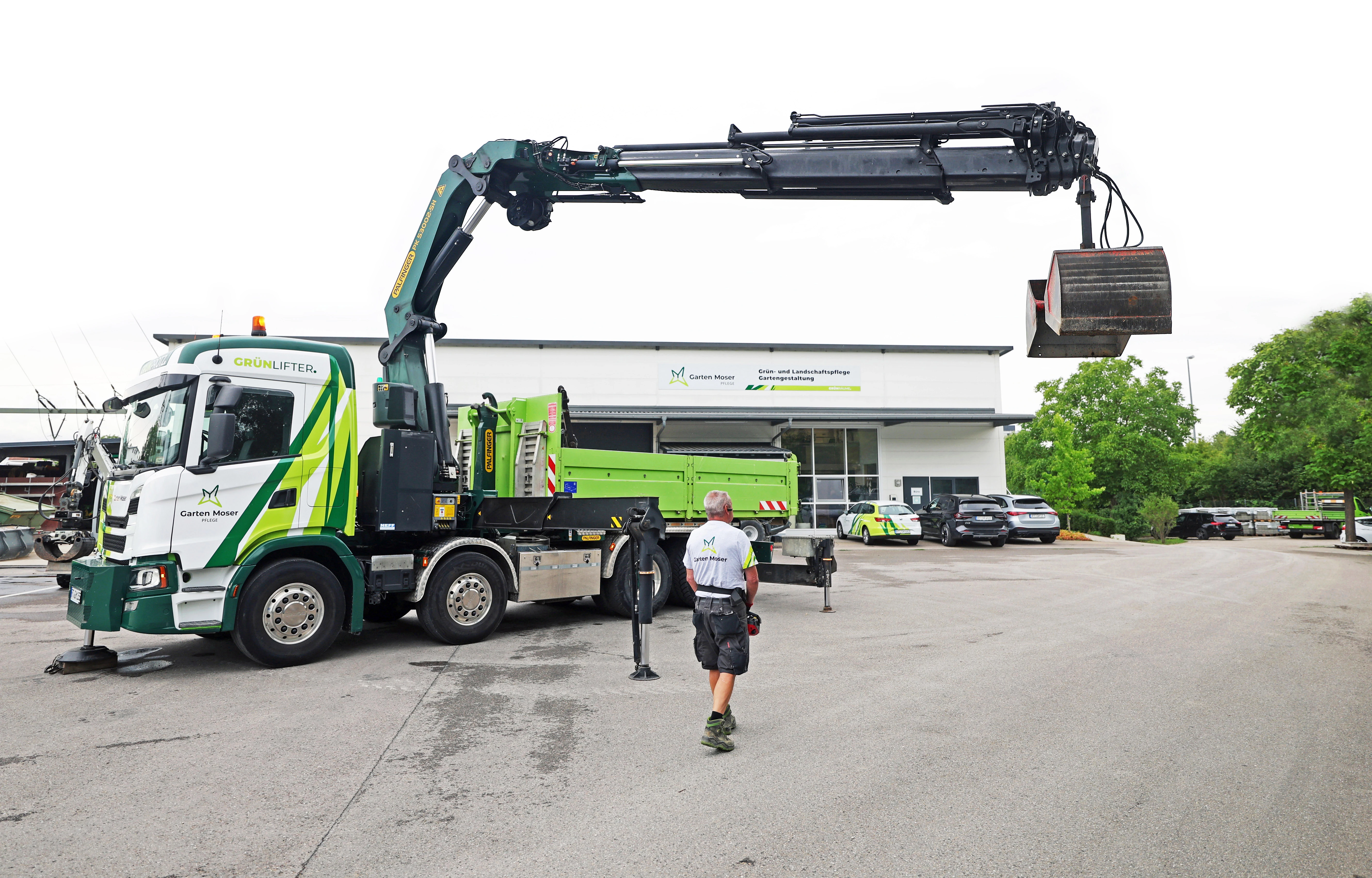 Mit seinem breiten Leistungsspektrum bietet der Garten-Moser Grünlifter ein echtes Plus an Flexibilität. Er ist perfekt für den gleichzeitigen Transport und das Ausbringen von Schüttgütern, die Ausführung von Erdarbeiten an schwer zugänglichen Böschungen und Gräben oder effizientes Arbeiten in beengten Baufenstern.