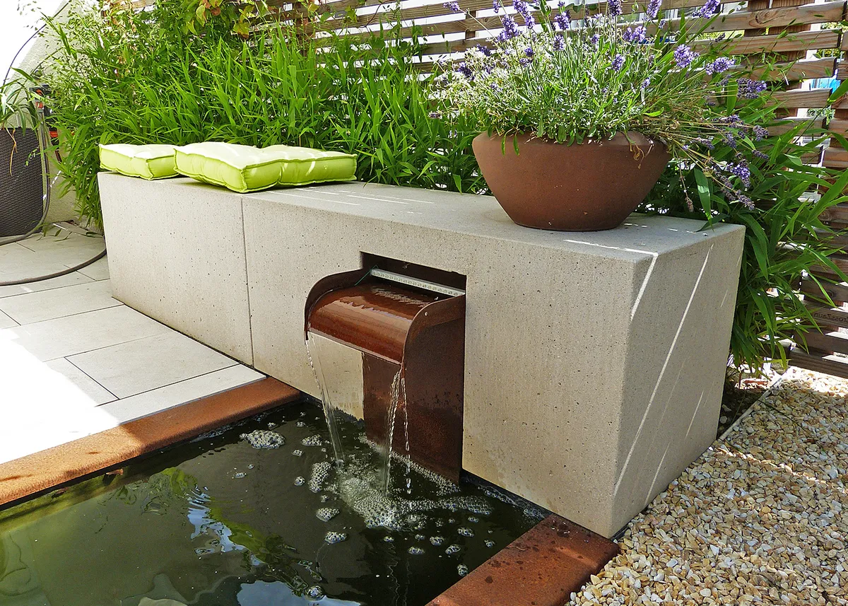 Die Spiegelungen auf der Wasserfläche holen zusätzliches Licht herein, zugleich vermittelt das Plätschern eine naturnahe Umgebung.