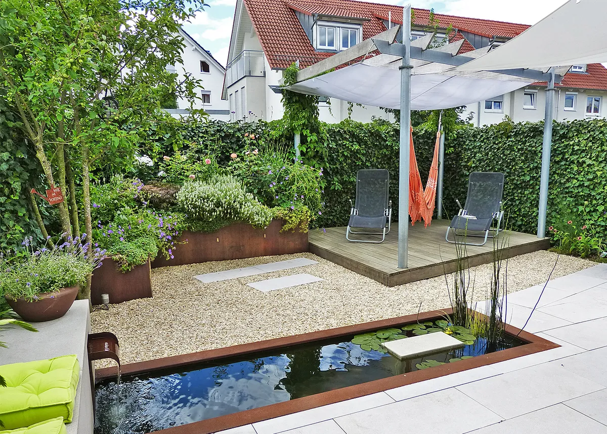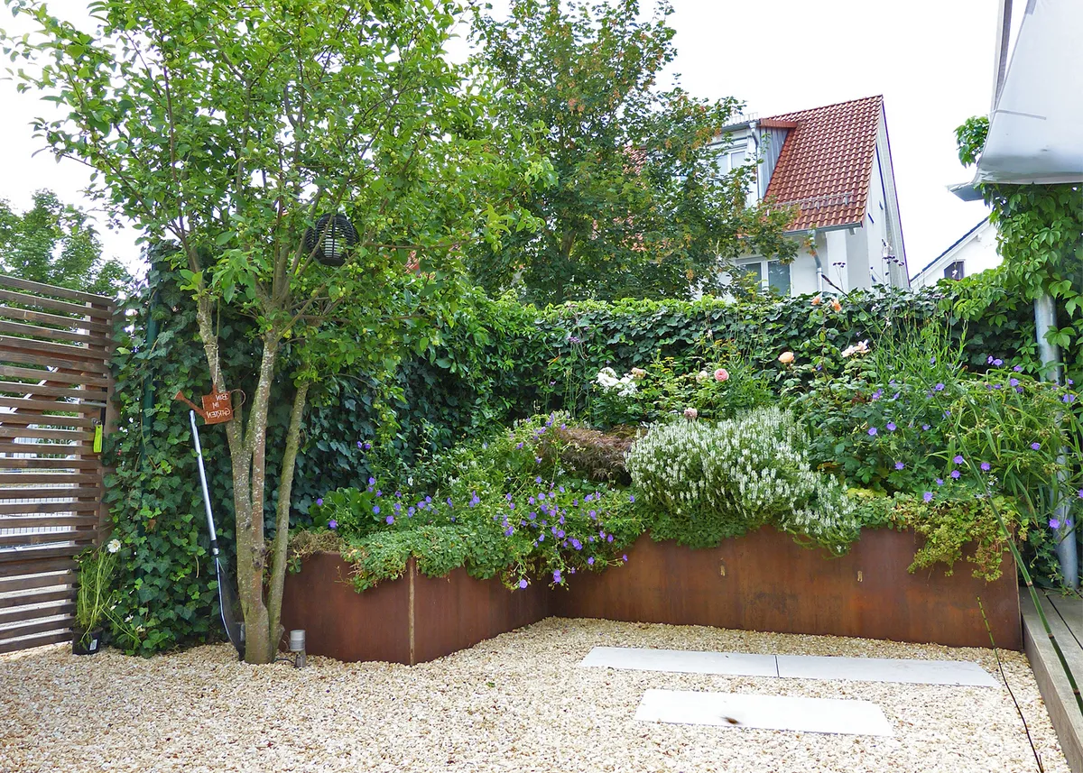 Dieser kompakte Garten hat nur 65 m². Er ist ein gelungenes Beispiel, wie durch ein schlüssiges Gesamtkonzept auch auf kleinem Raum große Wünsche verwirklicht werden können.