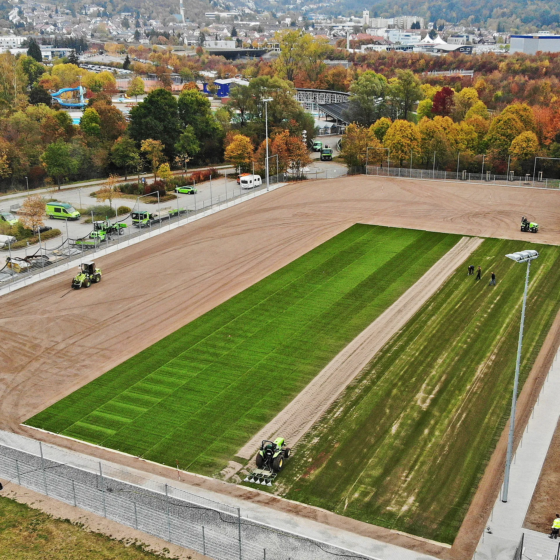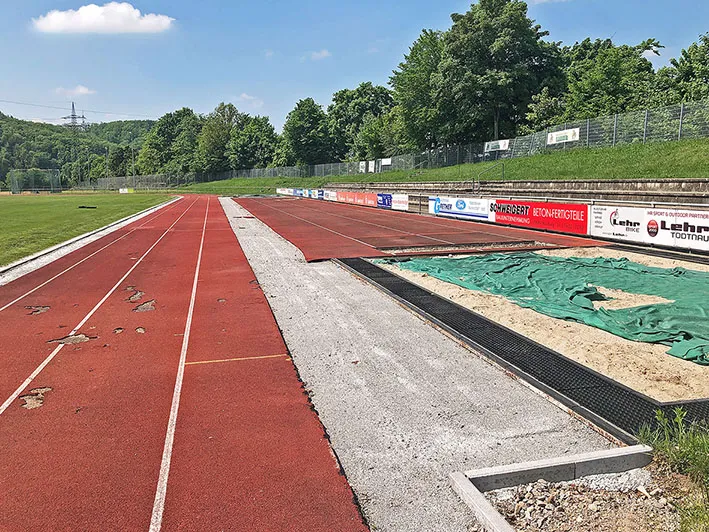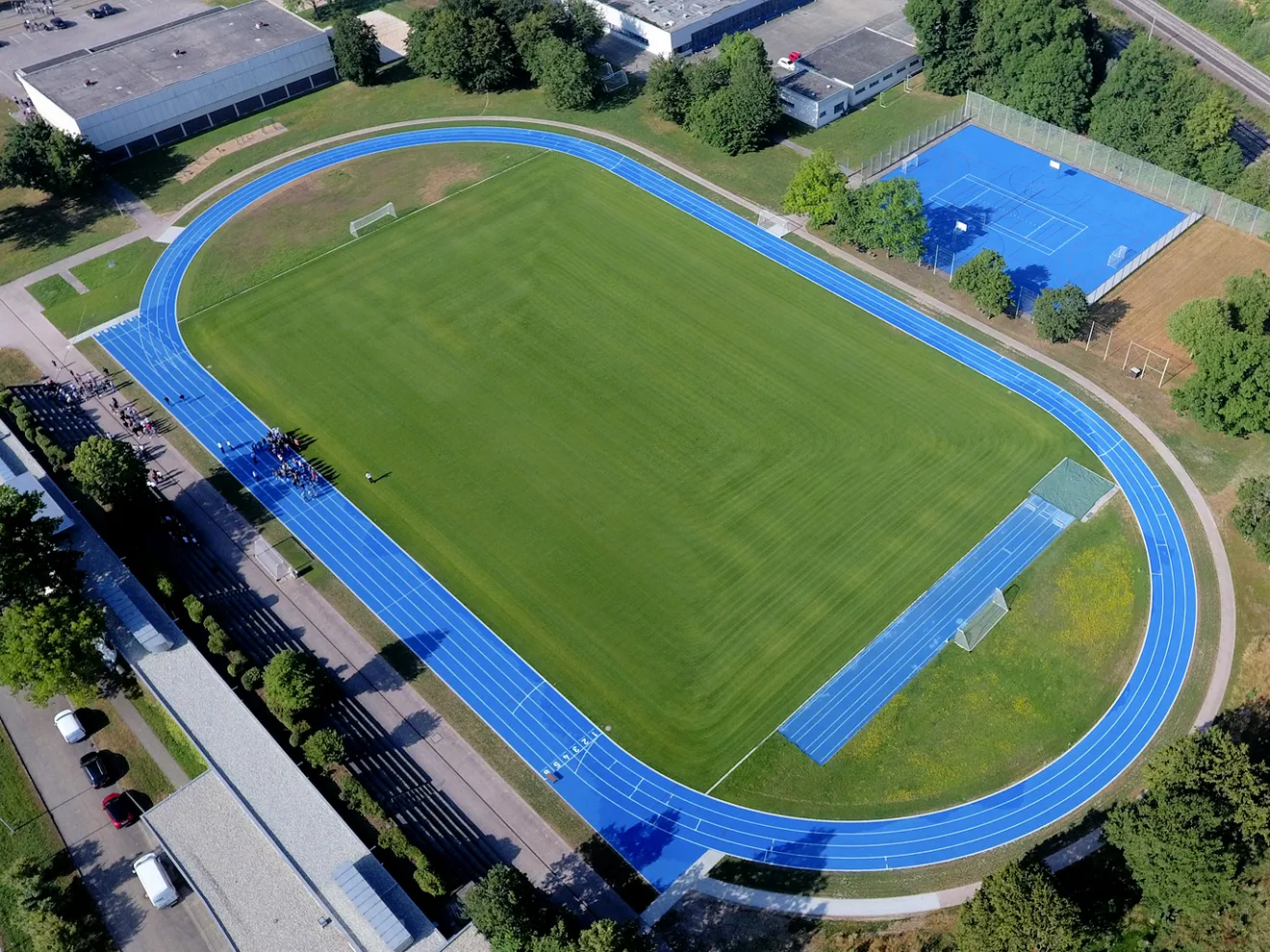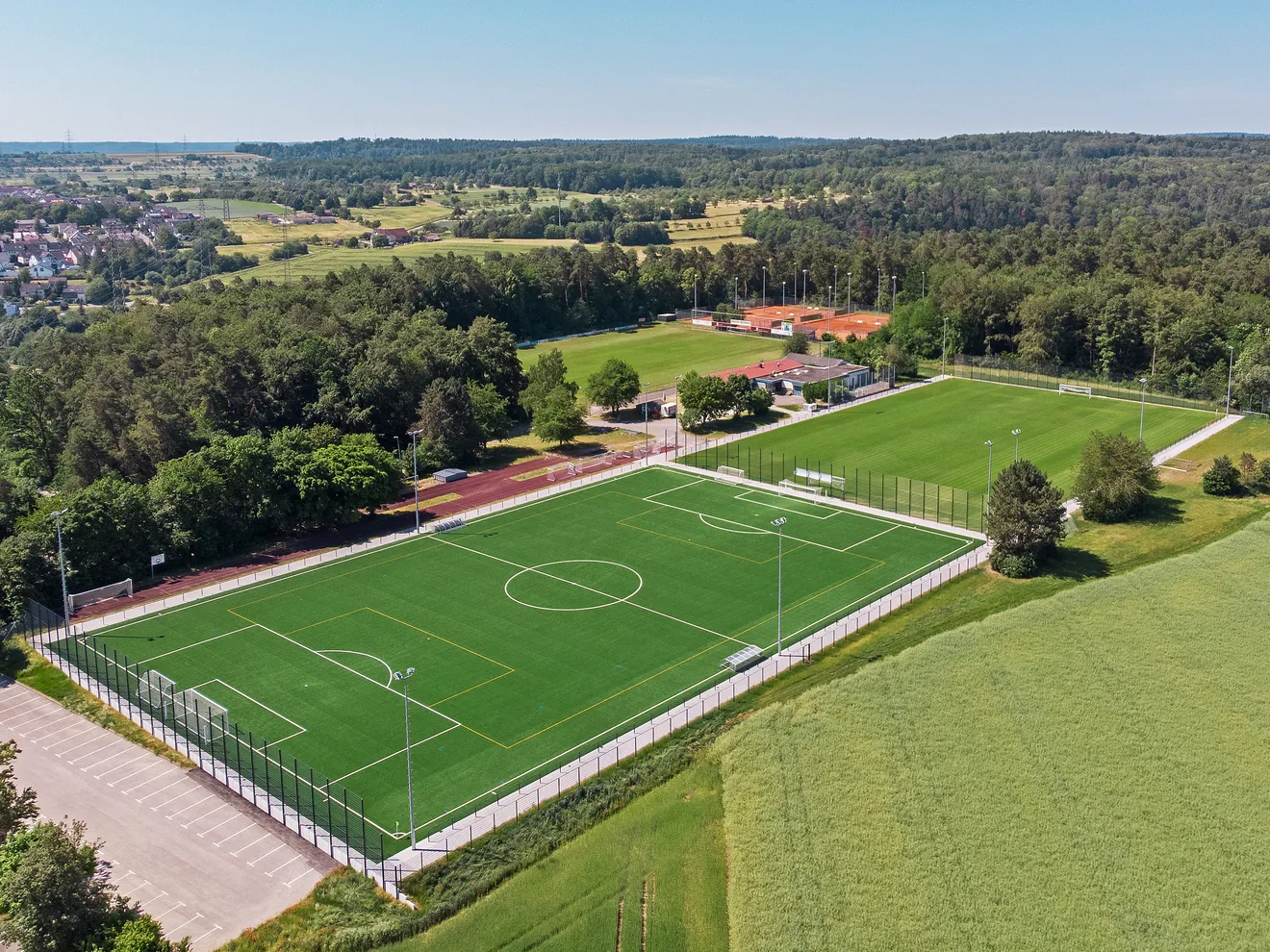 Ein weiteres Highlight war die Fertigstellung des neuen Floschenstadions in Sindelfingen nach mehrjähriger Bauzeit. Hier realisierten wir das Rasenspielfeld, die Leichtathletikflächen sowie die kompletten Außenanlagen. Besonders nachhaltige Anforderungen stellte auch der Württembergische Landessportbund für den Umbau eines Rasenplatzes in ein modernes Kunstrasenspielfeld an der Landessportschule in Ruit.