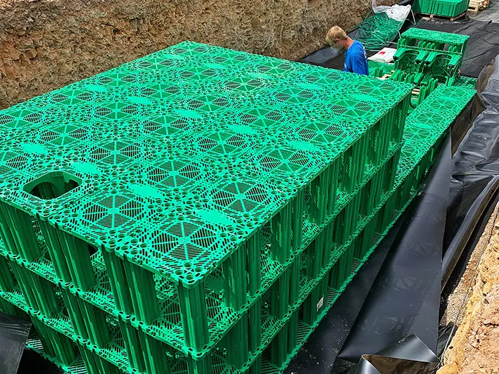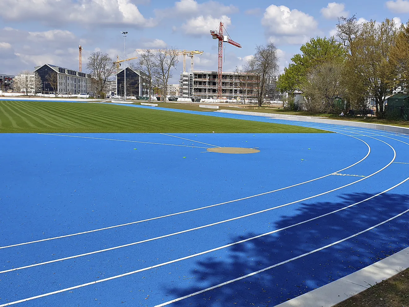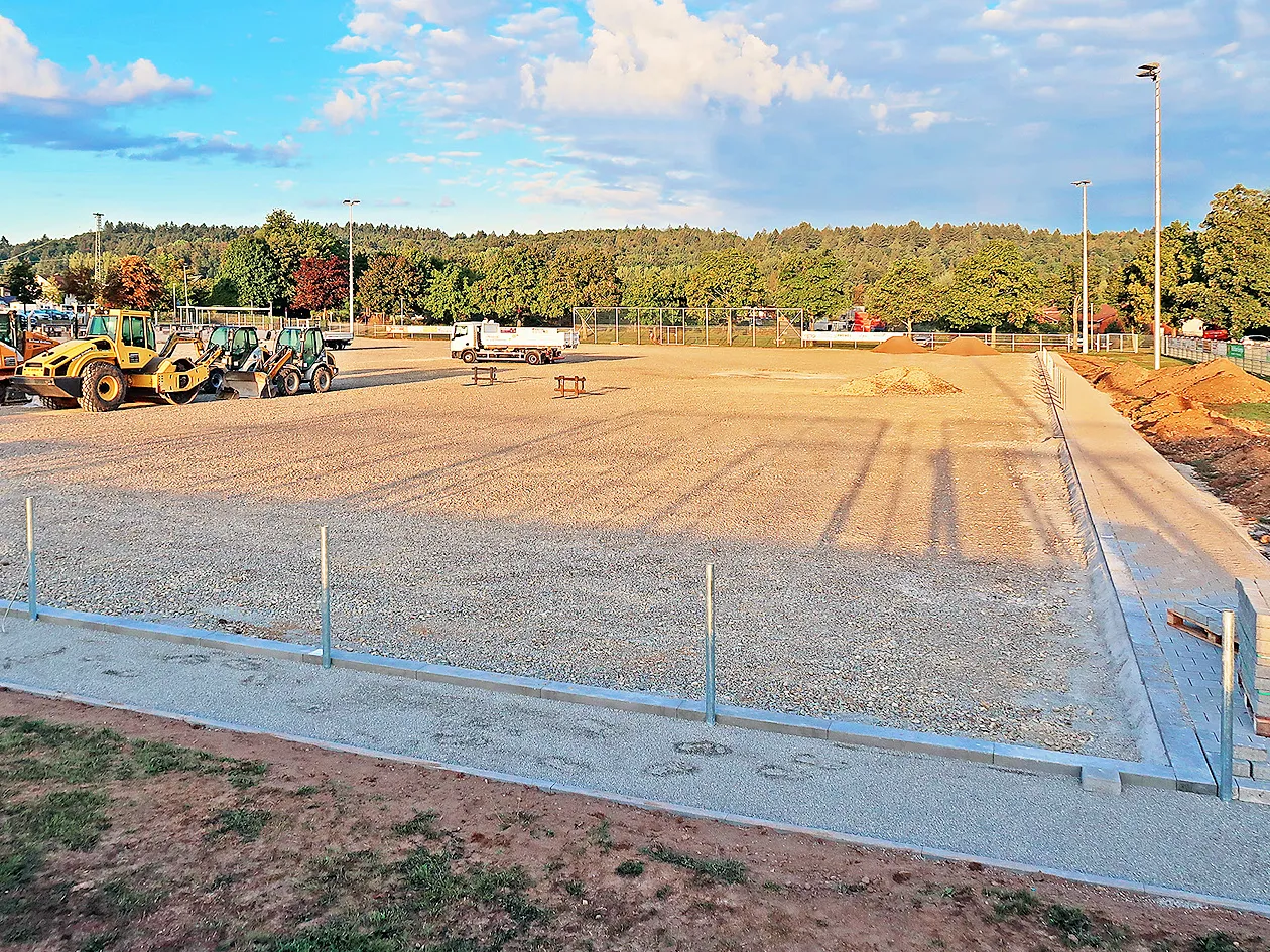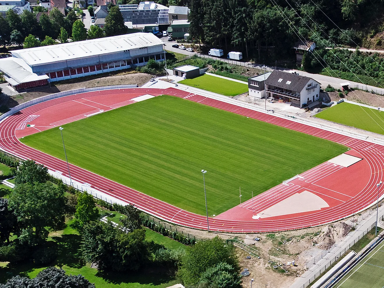 Ein weiteres Highlight war die Fertigstellung des neuen Floschenstadions in Sindelfingen nach mehrjähriger Bauzeit. Hier realisierten wir das Rasenspielfeld, die Leichtathletikflächen sowie die kompletten Außenanlagen. Besonders nachhaltige Anforderungen stellte auch der Württembergische Landessportbund für den Umbau eines Rasenplatzes in ein modernes Kunstrasenspielfeld an der Landessportschule in Ruit.