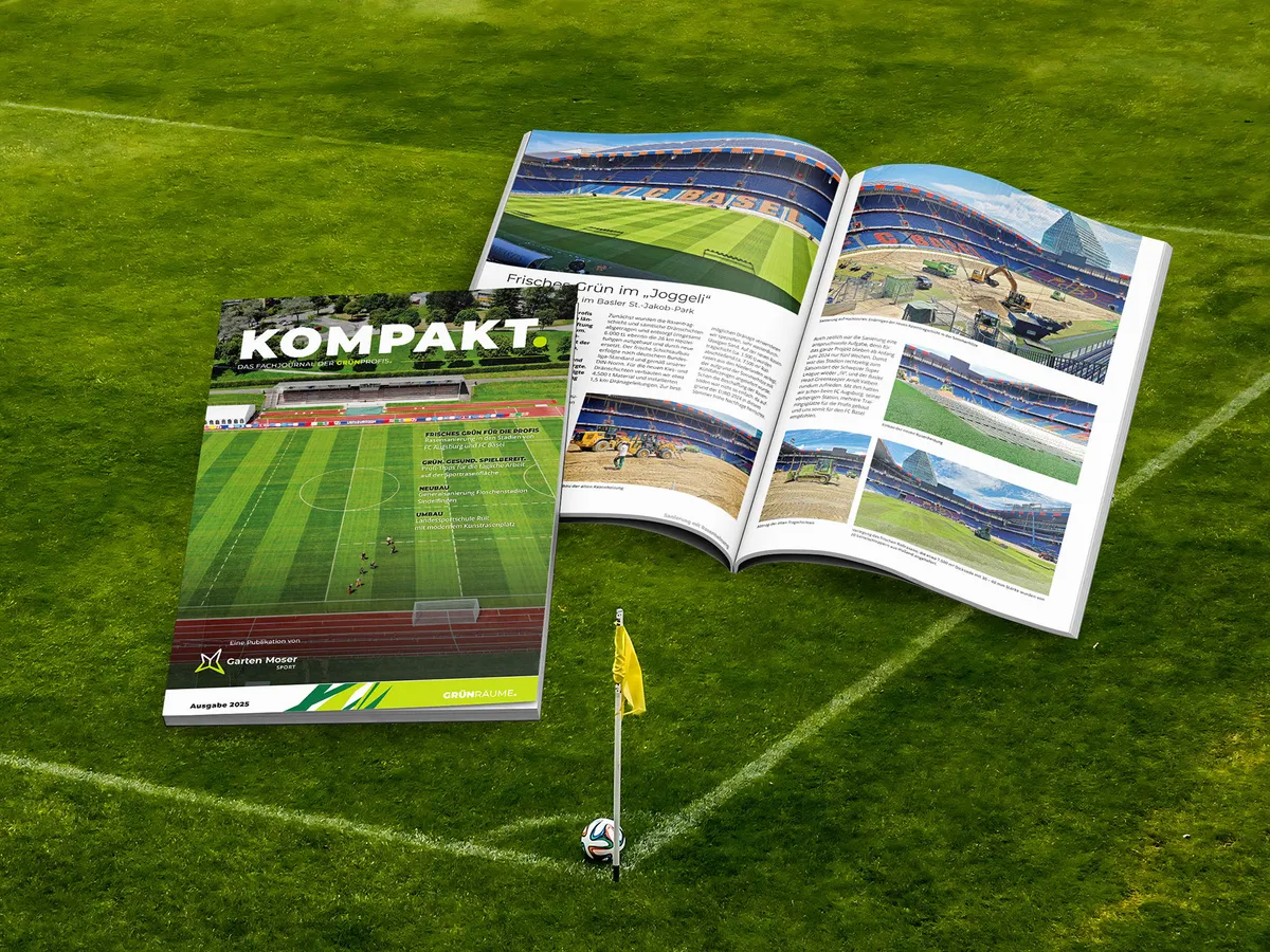 Das letzte Jahr war zum einen geprägt von unseren Bauprojekten für gleich vier Nationalteams zur Euro 2024. Hierzu zählte die Unterstützung der dänischen Nationalelf mit einem frisch sanierten Spielfeld sowie beim Greenkeeping im Freudenstädter Stadion. Einmal mehr war unsere Erfahrung in der Rasenpflege gefragt, darum berichten wir im neuen KOMPAKT über die wichtigsten Pflegeschritte.