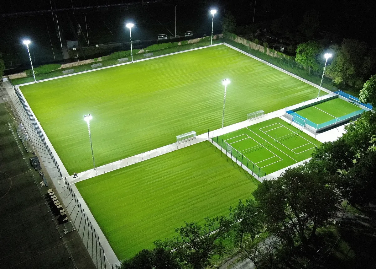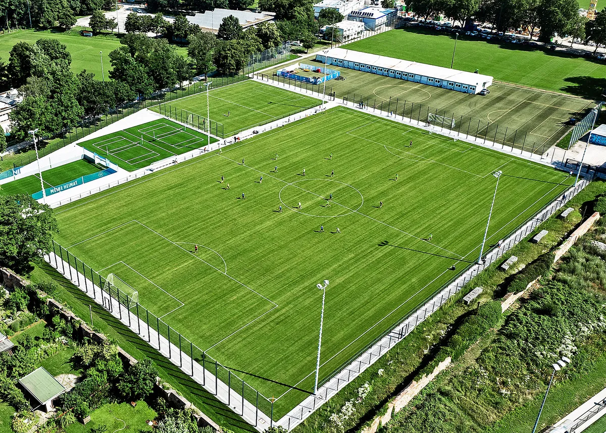 - Naturrasen-Nebenplatz für das Torwarttraining (Maße 47x35 m)