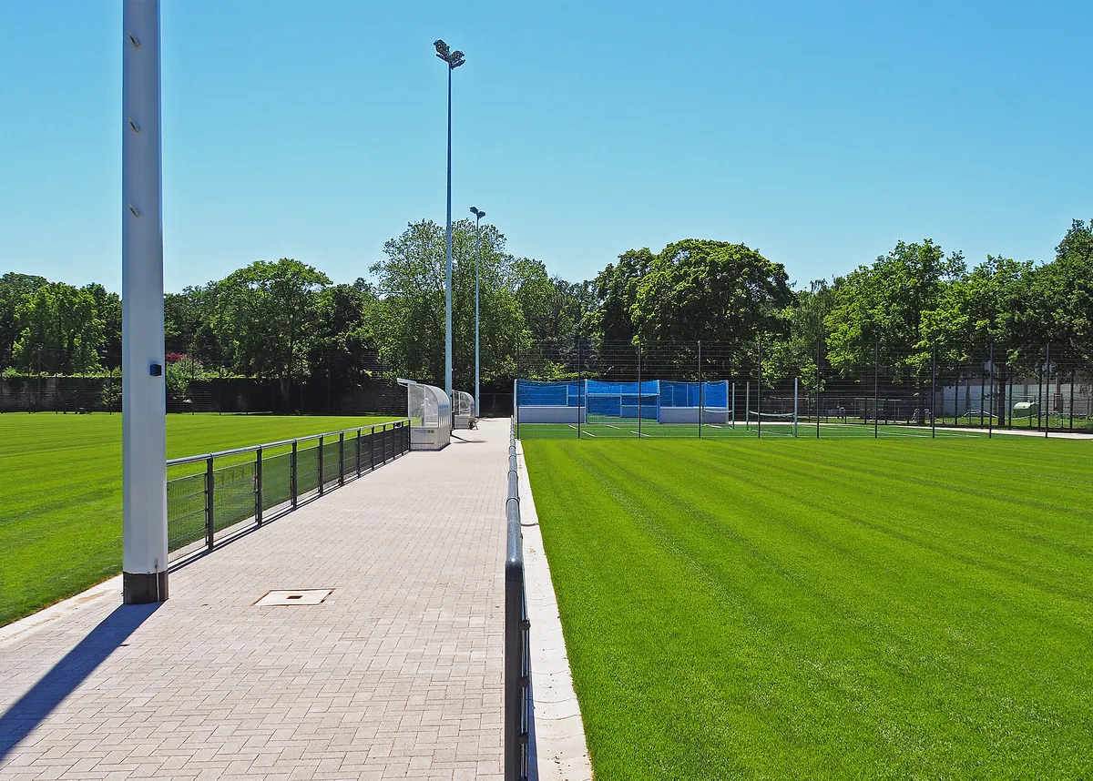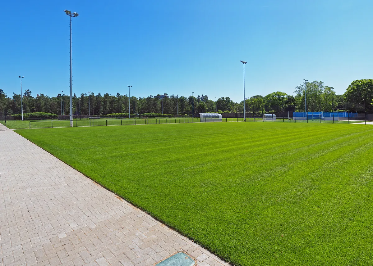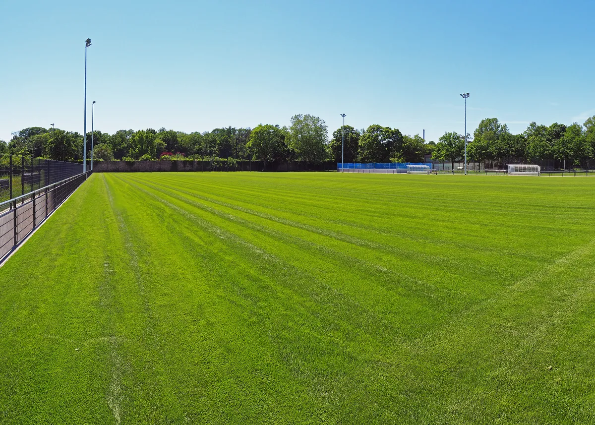 - Naturrasenspielfeld mit Idealmaßen (Bruttofläche 109x73 m / Linierung 105x68 m)