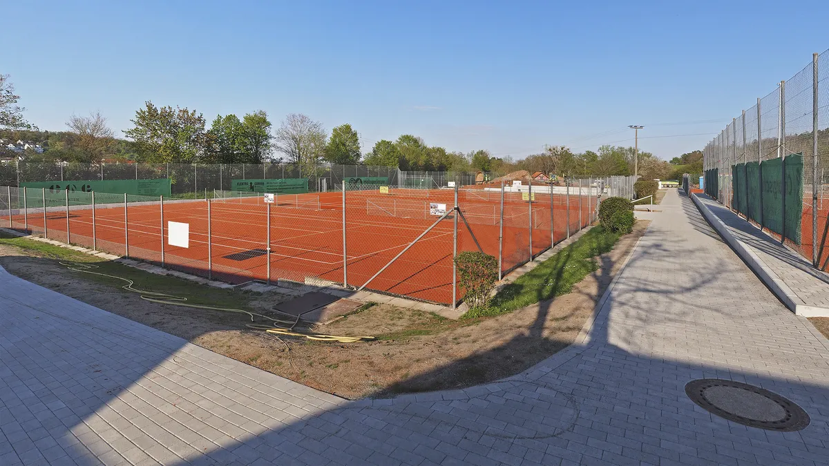 Zusätzlich zur Sanierung der Plätze optimierten wir auch die Infrastruktur. Entlang der Plätze 1 und 2 sowie an Platz 3 wurden Mauerscheiben zum Ausgleich der Höhenunterschiede im Gelände und zur Fixierung der Erdmassen eingebaut. Die Wegeführung vom Clubhaus zu den Stirnseiten der Plätze wurde umgestaltet, ebenso erhielten alle Wege frische Pflasterbeläge.