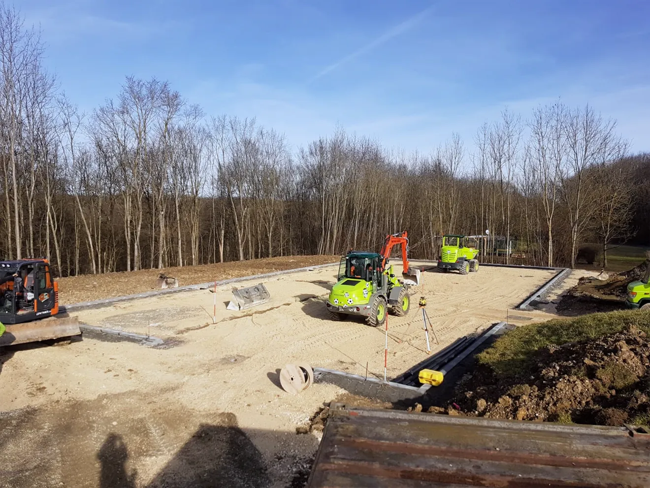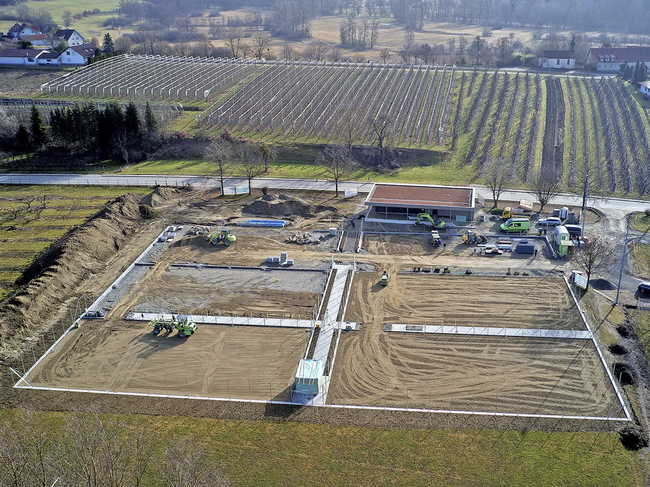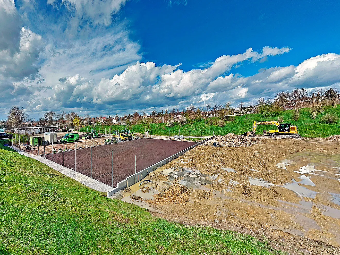 Die Bauausführung erfolgt gemäß gültiger DIN-Normen und mit unserer ganzen Erfahrung aus hunderten neu gebauter Plätze. Zu unseren Standards zählen u. a. der Einbau des kompletten Drainagesystems, der fachgerechte Schichtaufbau mit lasergesteuerten Spezialmaschinen, der Einbau eines Bewässerungssystems mit Versenkregnern und automatischer Steuerung sowie die komplette spieltechnische Ausstattung des Platzes.
