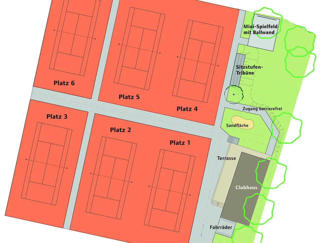 Für Ihre neue Tennisanlage erstellen wir zunächst eine Analyse der bestehenden Geländesituation und machen uns mit der vorhandenen Bodenbeschaffenheit vertraut. Auf der Basis Ihrer individuellen Anforderungen erstellen wir ein tragfähiges Planungskonzept mit realistischer transparenter Kostenkalkulation.