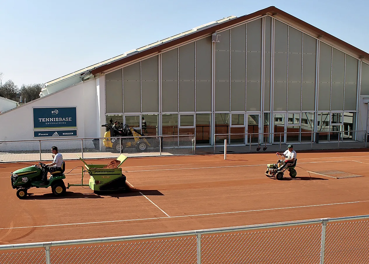 Weil der Sandplatz ganz eigene Ansprüche stellt und die Plätze perfekt werden sollen, kombinieren wir all unsere Expertise auch beim Tennis. Mit hunderten neu gebauter Plätze, zahllosen neuen Drainagesystemen, fachgerechtem Schichtaufbau mit lasergesteuerten Spezialmaschinen, Versenkregnern mit automatischer Steuerung, der spieltechnischen Ausstattung, dazugehörigem Zaunbau und der Gestaltung der Außenanlagen. Mit uns finden Sie ihr Match und gewinnen langfristig.