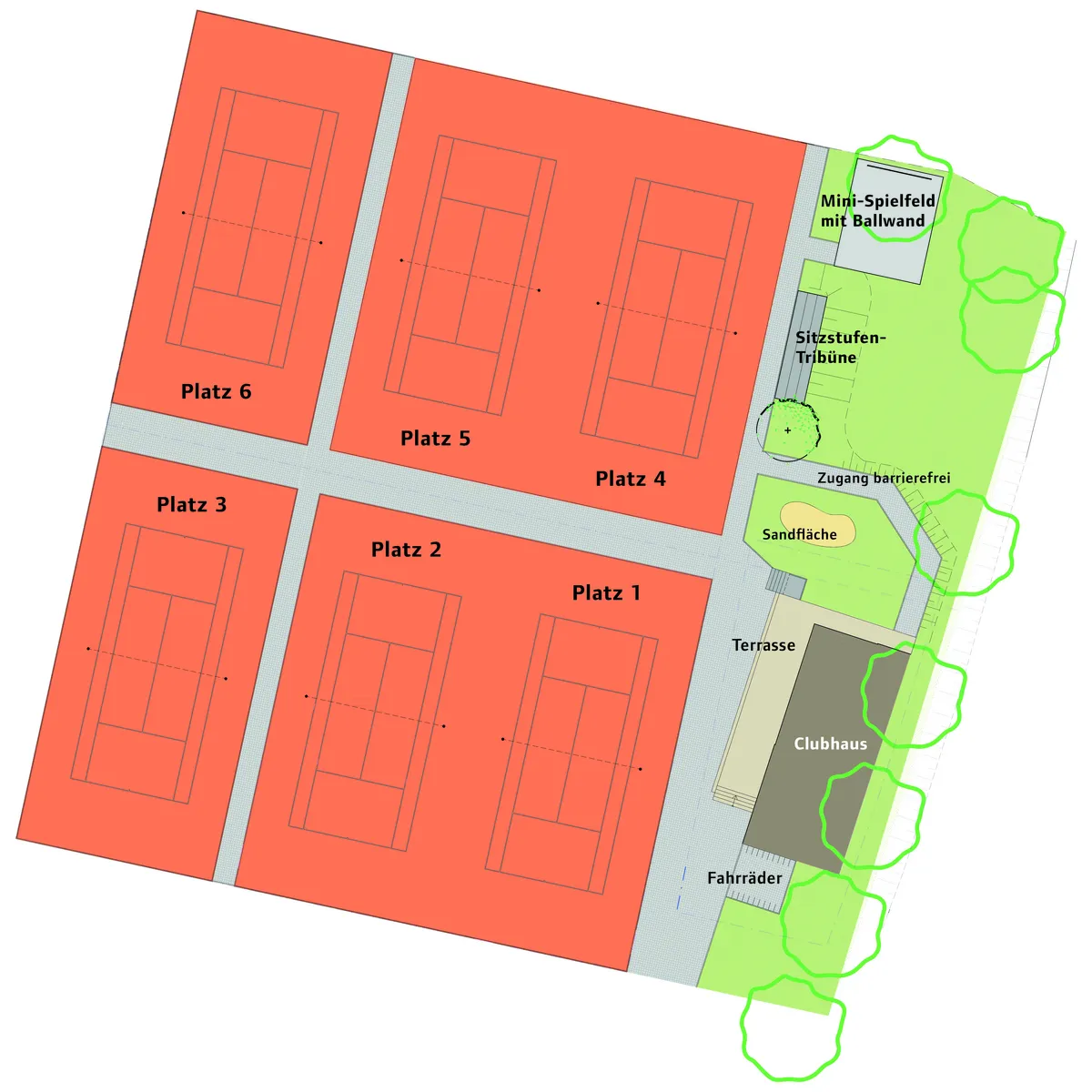 - Neubau von sechs Sandplätzen einschließlich Erschließungswegen