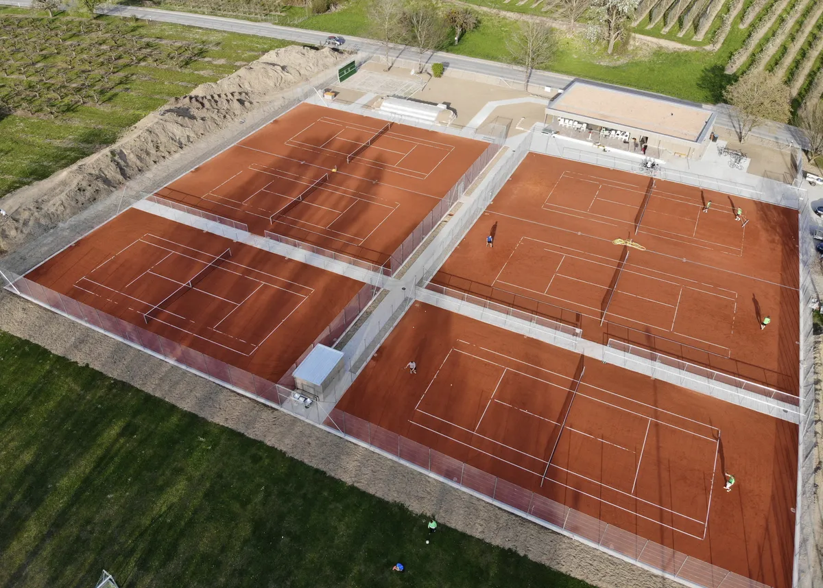 Da die Sandplätze fast 50 Jahre alt und zudem dringend sanierungsbedürftig waren, entschied man sich für einen kompletten Neubau der Tennisanlage samt schmuckem neuem Vereinsheim auf dem alten Bolzplatz des Fußballvereins am Ortsausgang.