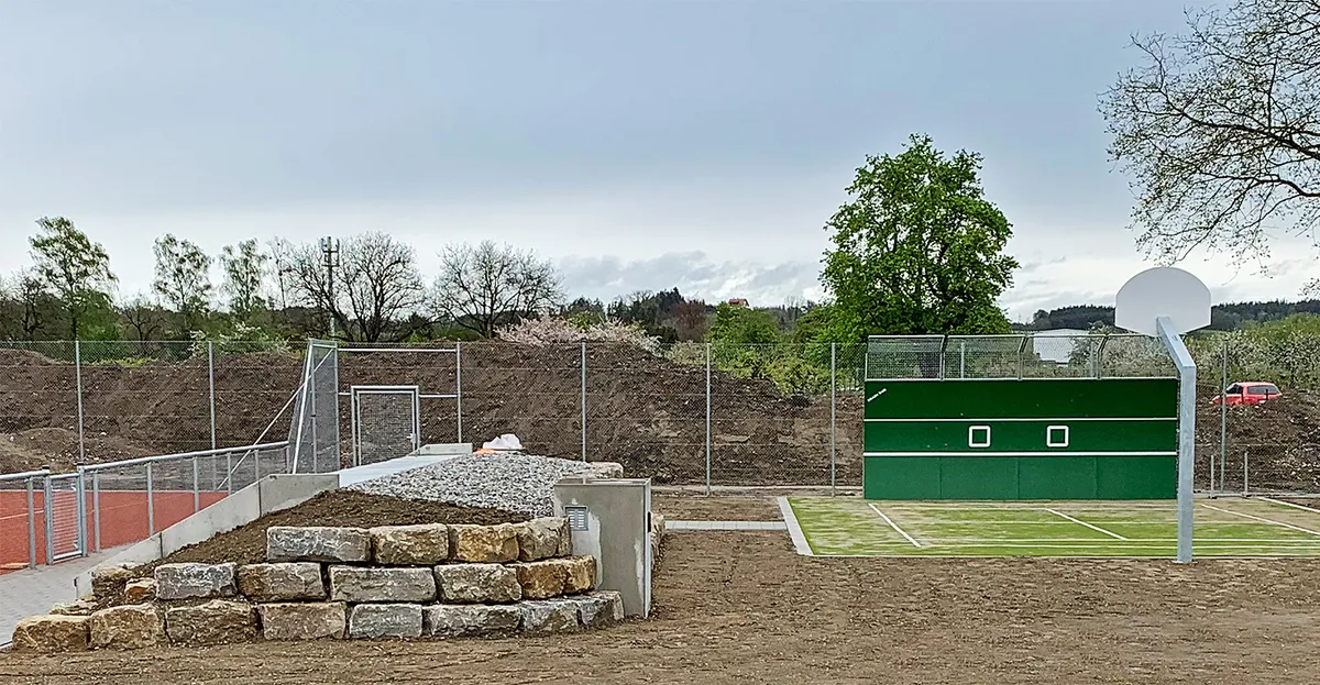 - Geländemodellierung und Gestaltung der Freiflächen bis an das neue Vereinsheim
